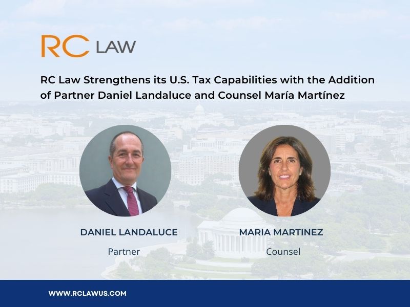 RC Law is pleased to announce the strengthening of its Tax practice with the addition of Partner Daniel Landaluce, who will be based in Washington, D.C., and Counsel María Martínez, who will be based in Barcelona, Spain. Together, they bring decades of tax experience that will enhance RC Law’s ability to serve international and U.S. clients.