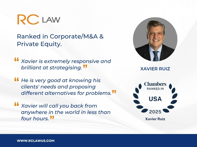 This recognition is especially meaningful as it highlights Xavier’s journey — from a stellar career in private practice to founding RC Law in 2017 — and his unwavering commitment to helping corporations succeed in the United States. As a dual-qualified U.S. and Spanish lawyer, Xavier has remained true to what sets him apart: bridging legal and cultural gaps to offer clear, strategic, and business-oriented legal guidance to international clients.